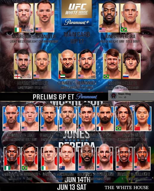 On June 14, 2026, the South Lawn of the White House in Washington, D.C., hosted the unprecedented UFC White House Championship Night, an 8-title mega-event commemorating the United States’ 250th anniversary. The outdoor Octagon, surrounded by the iconic White House backdrop and 25,000 spectators including President Trump, military veterans, and fight fans, saw five title changes and three defenses in one of the most ambitious cards in combat sports history. Headlined by Islam Makhachev’s fourth-round rear-naked choke submission over Justin Gaethje to unify the lightweight title (3:55), the night featured Kayla Harrison’s TKO defense against Cris Cyborg (women’s bantamweight, Round 2, 2:10), Tom Aspinall’s KO of Khamzat Chimaev (heavyweight unification, Round 3, 1:55), Merab Dvalishvili’s decision win over Sean O’Malley (bantamweight), and Alexander Volkanovski’s unanimous decision defense against Ilia Topuria (featherweight). Airing live on Paramount+ PPV at 8:00 p.m. ET, the event shattered records with 2.8 million buys, with X posts like @UFC tweeting, “White House UFC—history made on the South Lawn!” This landmark card blended patriotism, spectacle, and elite competition, redefining UFC’s global reach.